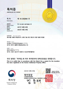 • 专利证书 牙间卫生器具制造装置及其制造方法 제 10-2171402 호