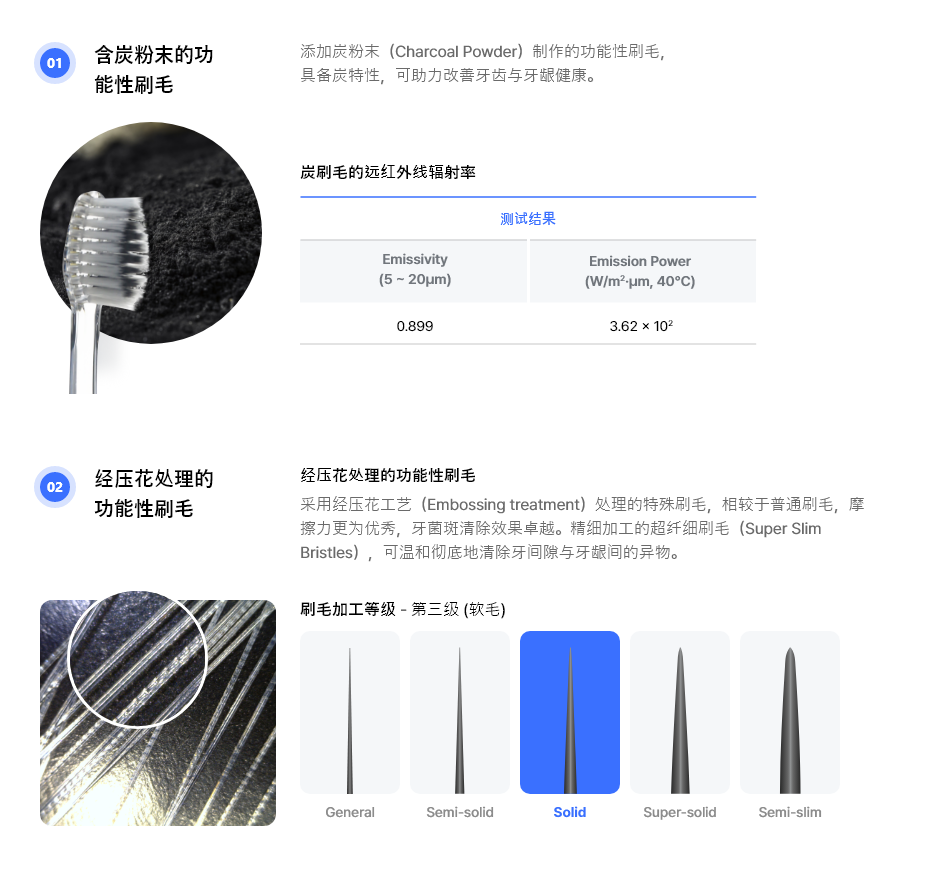 • 材质 刷毛 (Charcoal + PBT) / 刷柄 (PCTG)