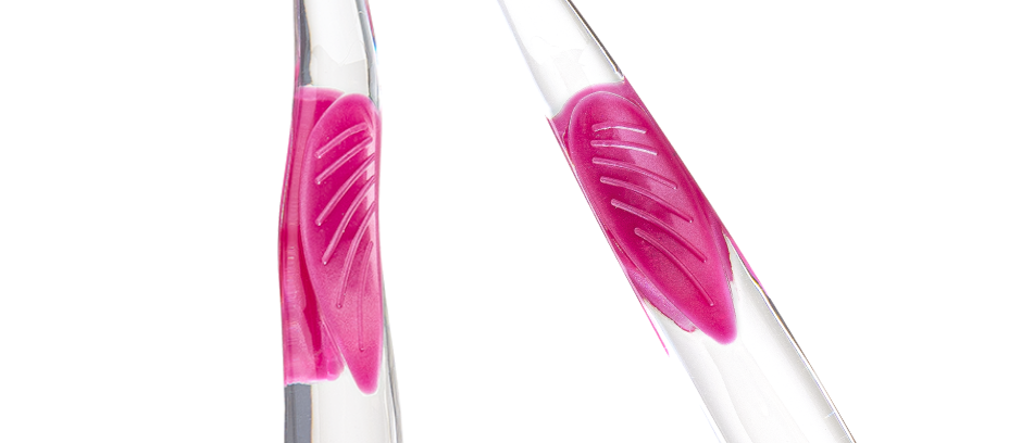 The embossed, anti-slip rubber grip ensures a secure and comfortable grip while brushing.