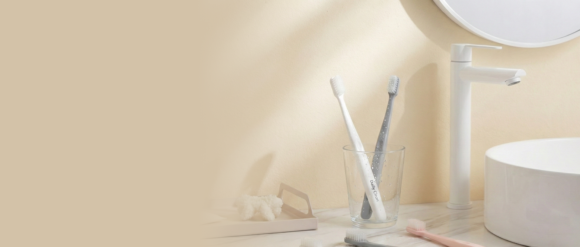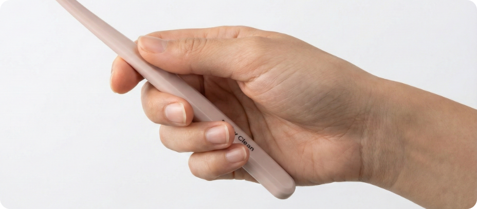 칫솔 손잡이로서의 본연을 잃지 않는 도톰한 그립감을 주는 데일리 클린 칫솔은 칫솔 손잡이의 단면이 8각형으로 디자인 되었습니다.